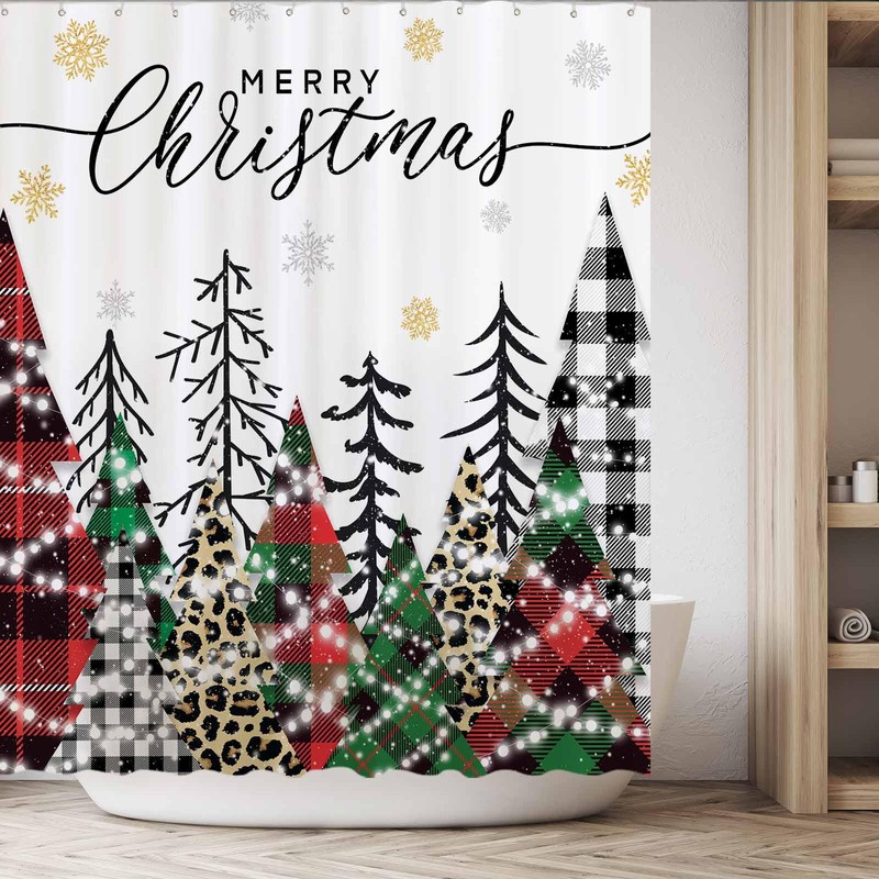 Funnytree 72"x72" Buffalo Check Plaid Merry Christmas Trees Winter Xmas Snowflakes Farmhouse Home Bath Bathtub Shower Curtain for Bathroom Decor Machine Washable (Hooks Not Included)