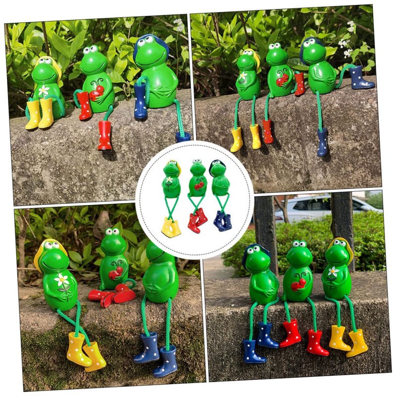 FUNOMOCYA 3pcs Resin Frog Figurine Decorative Ornaments Quirky Home Decor Living Adornment Resin Crafts Photography Prop
