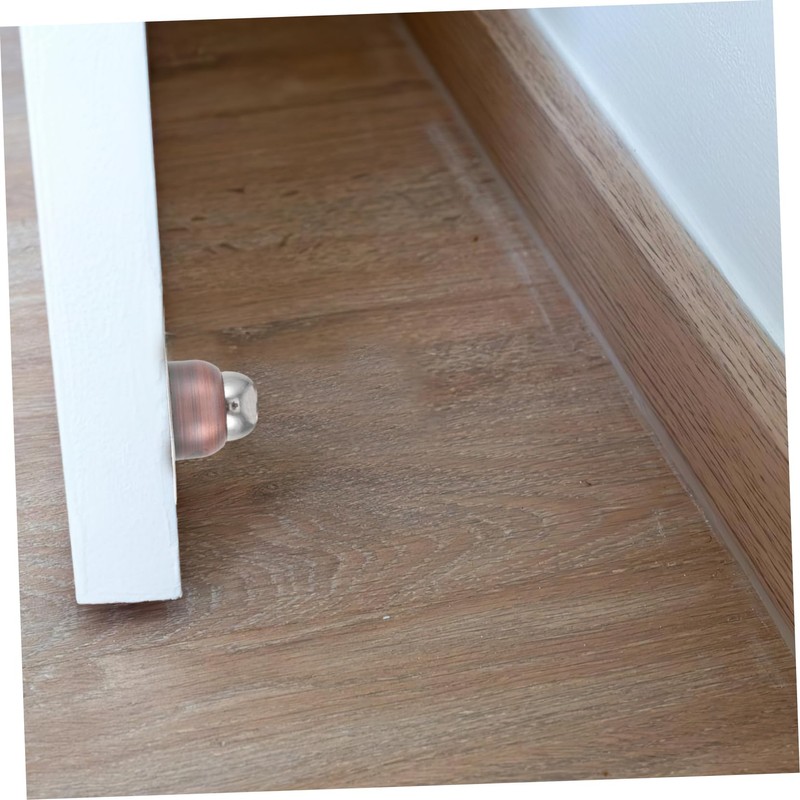 Enhance your home safety and convenience with this magnetic door stopper. Ideal for low doors and tight spaces, it offers a simple installation process. The stainless steel material ensures performance. To use, place the magnetic the door and the metal the wall or floor, ensuring they align for a .
