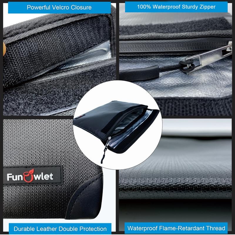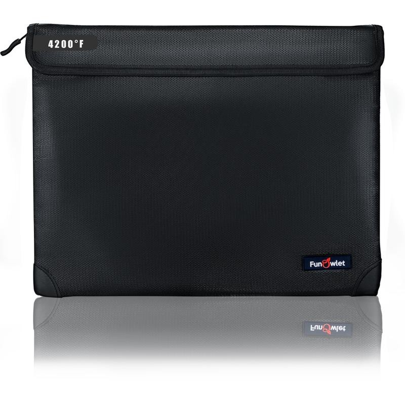 FunOwlet Fireproof Waterproof Money Document Bag - with 4200°F Heat Insulated Safe Storage Pouch with Zipper, Upgraded 8 Layers of Functional Material for Valuables (Black) - Size: 13.9" x 10.6"