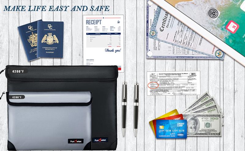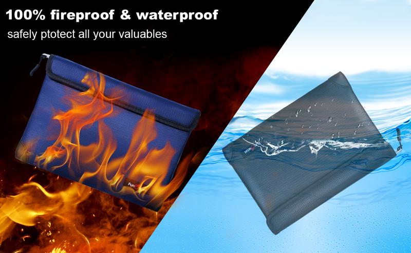 - WHY CHOOSE THE REAL FIREPROOF & WATERPROOF BAGS: Safe document storage designed to protect valuable items from fire, rainwater, or poorly functioning lithium battery packs. This fireproof document bags can keep your valuable items safe even at unforeseen fires.