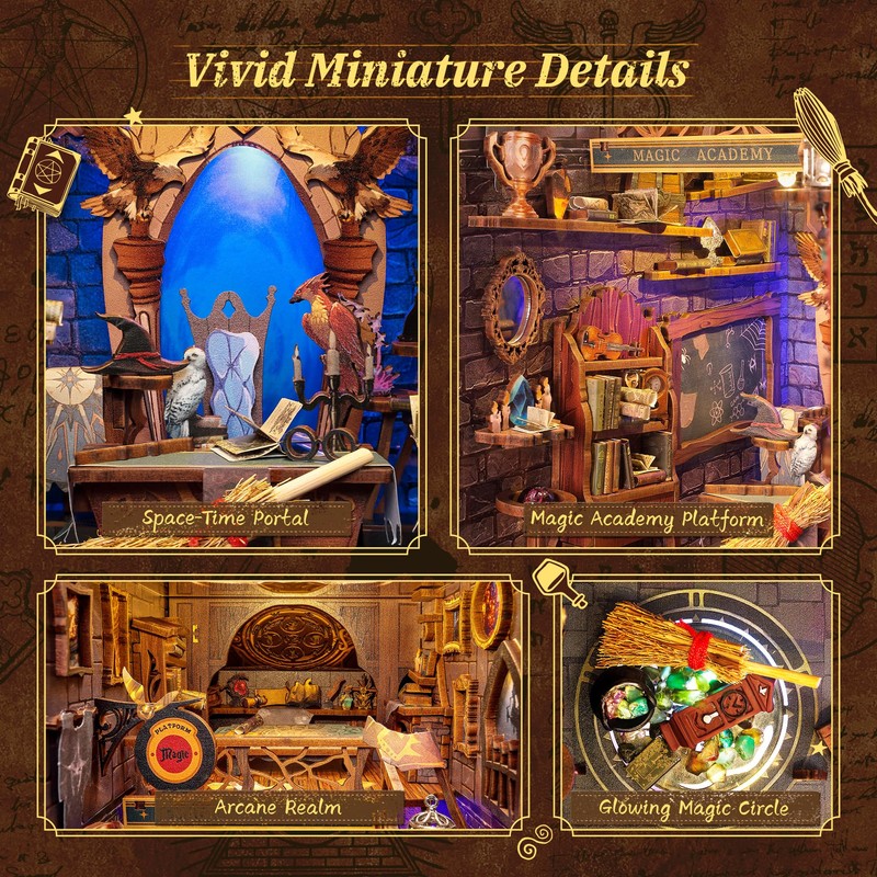 - 【Unique Gifts and Display Masterpiece】 More than just a 3D puzzle, this Magic Academy book nook is a stunning home décor piece. A perfect gift for book nook lovers, magic fans or DIY hobbyists. It’s a captivating addition to any bookshelf, study, or living space.