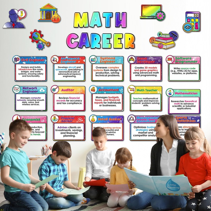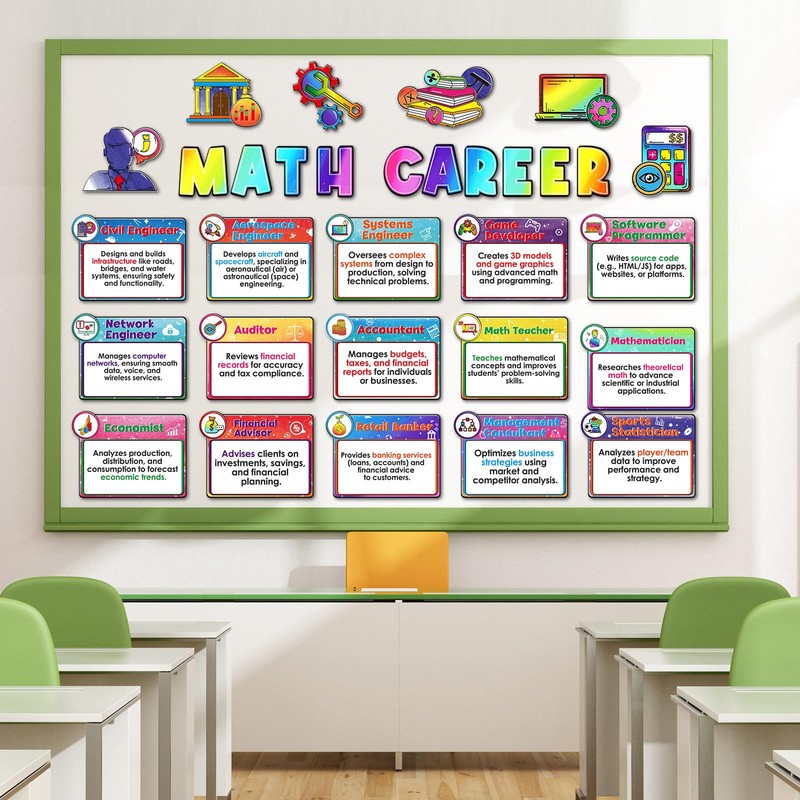 - Math Career Bulletin Board Set: this math bulletin board set includes math posters and cutouts to give students a picture of various math fields and career paths; Suitable for back to school classroom decor and spark curiosity about math explorations among middle school students