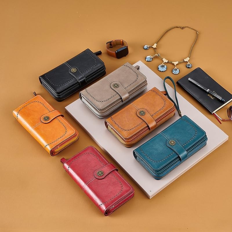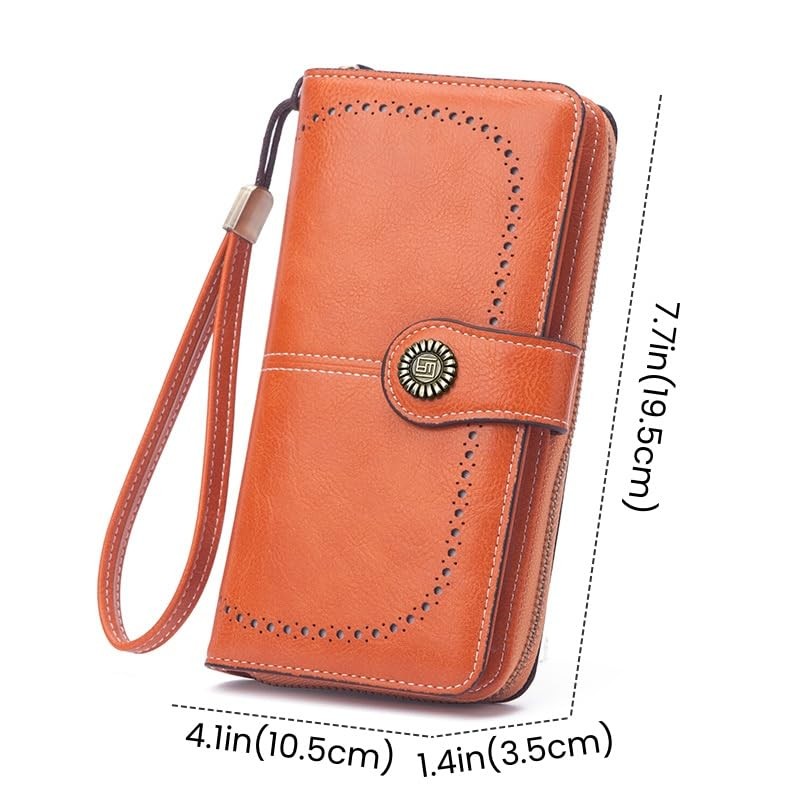 FUNSEED Rfid Wallet for Women, Elegant Long Thin Multi Card Holder Case Purse, Large Capacity Zipper Buckle Coin Purse Clutch Wallets, Orange, M, Simple
