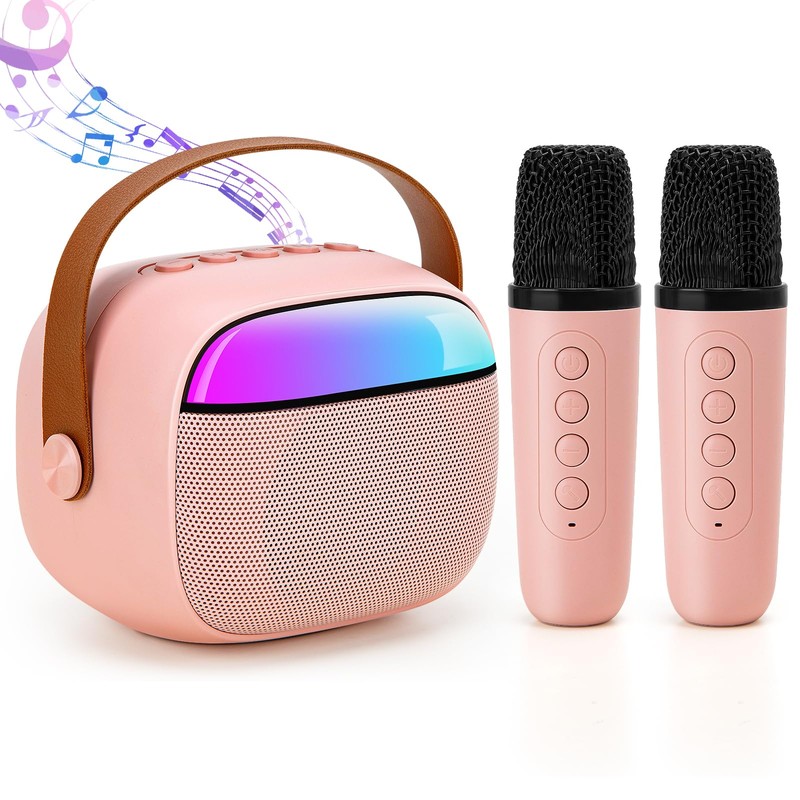 Funsland Karaoke Machine 2 Microphones Kids - Mini Portable Bluetooth Speaker with 2 Wireless Microphone, Kids Microphone Toys for 3-16 Year Old, Birthday for 3-12 Year Old Girls, Pink