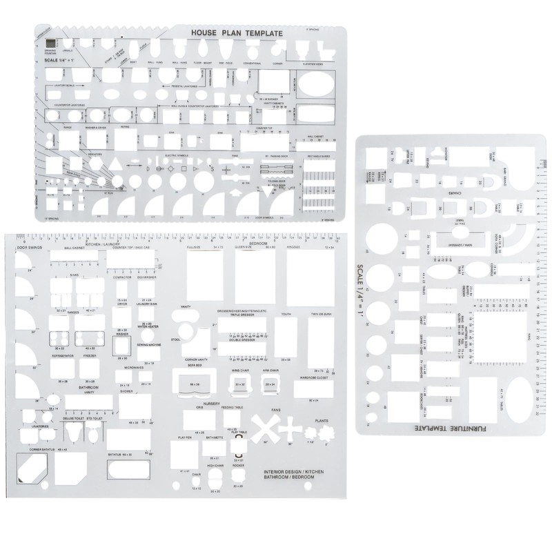 Funstreet Architectural Drafting Tools, 3 PCS Templates,Reusable Stencils for Drawing & Drawing Tools