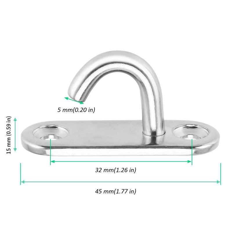 - OPENING DESIGN - The heavy-duty m5 pad eye plate adopts an open hook design, which is very convenient for hanging items. No need to open or close, just hang it up directly, and can also be used with various snaps and ropes. The design of countersunk screw holes ensures screws do not protrude after installation.
