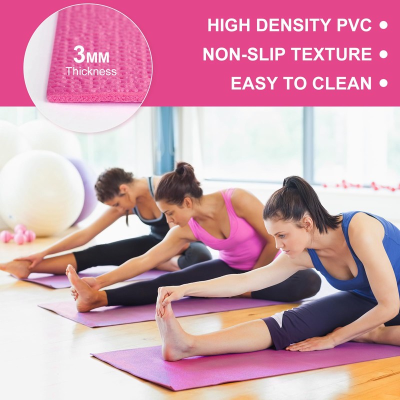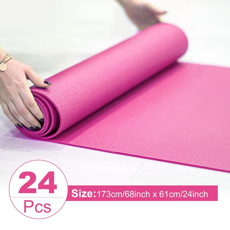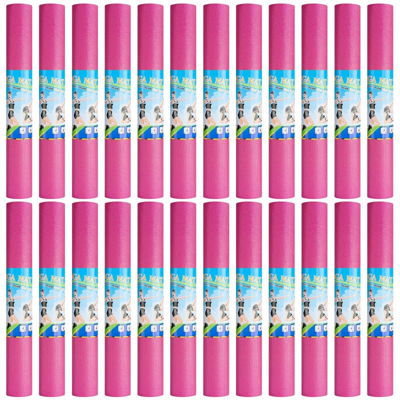Funtery 24 Pcs 3 mm Thick Yoga Mat Bulk Exercise Workout Mat Non Slip Fitness Yoga Pad for Women Gym Home Pilates (Rose)