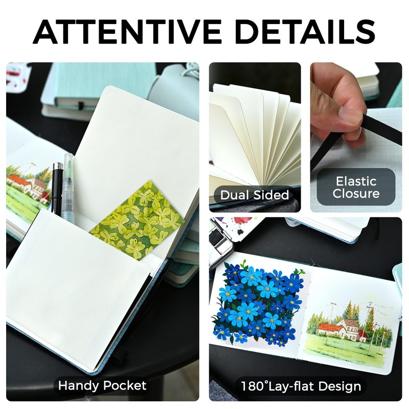 - METICULOUSLY BOUND - Funto Watercolor Journal is a masterful blend of artistry and craftsmanship.The built-in paper pocket and elastic band ensure its integrity.