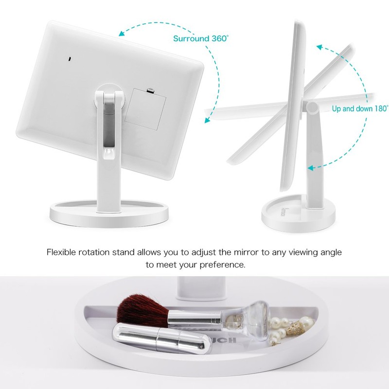 - 4. [360 Degree Rotating] The led makeup mirror stands on your countertop can be rotated Up and down 90 degree and Surround 360 degree rotation, Easy to find the perfect viewing angle without effort.