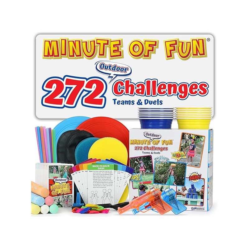 Funwares Minute of Fun Outdoor Game - 272 Minute to Win It Games, Backyard Birthdays, Home Parties, Family Fun, Activities for Teens, Camping, Travel. Most Contents to Play are Included, 2-12 Players