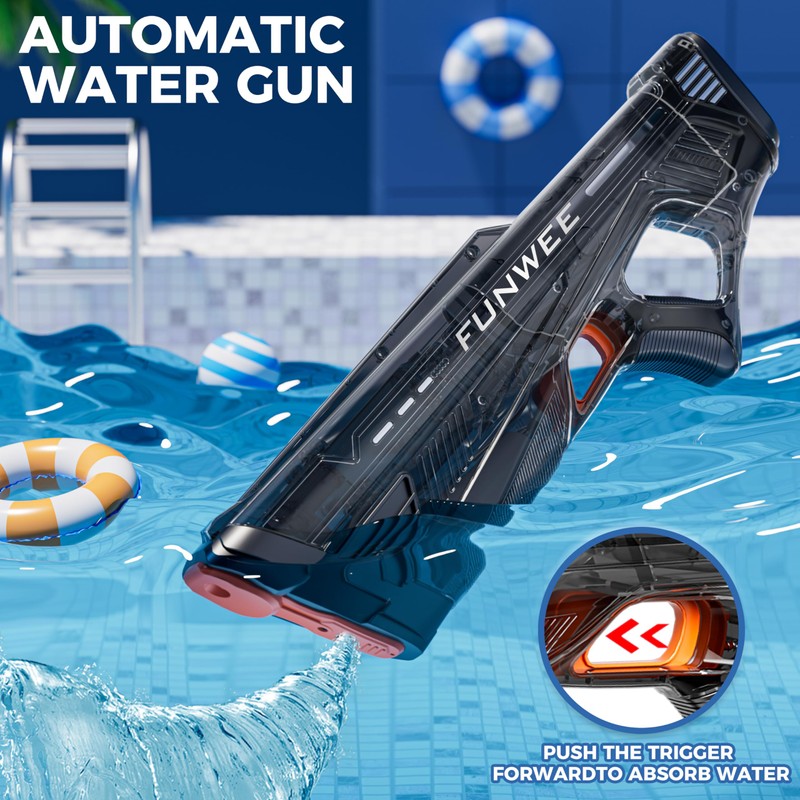 Funwee Electric Water Gun for Adults Kids, Powerful Automatic Squirt Gun, High Powered Shooting 100+ Times, Long Range, Auto Water Blaster, Outdoor Water Toy Game Pool (Transparent Black)