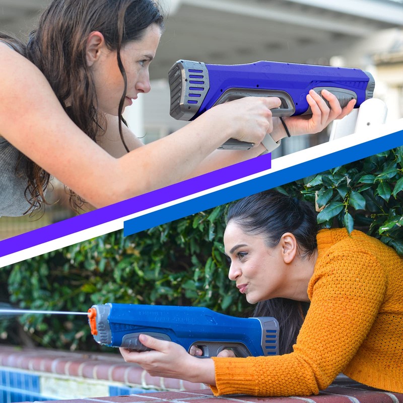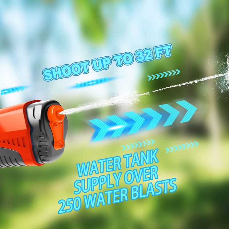 - 【High capacity &Long Target Range】More than 250 times continuous high power water blasts per fully water reload & over 32 feets Long range & fully battery supply over 3000 water blasts to keep you always online.
