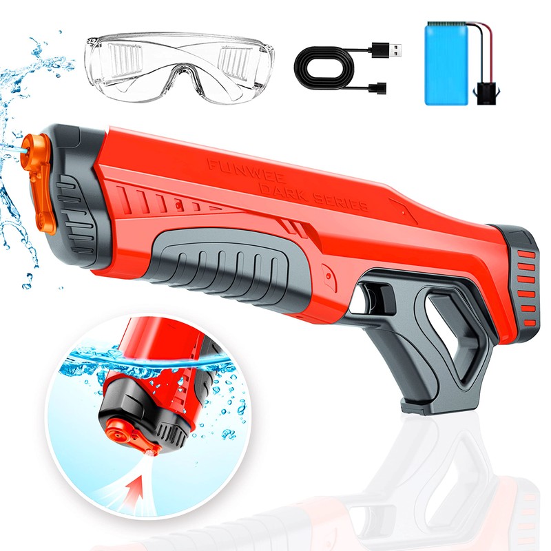 Funwee Electric Water Guns for Adults & Kids, Automatic Water Reload & Shooting Over 250 Blasts Water Blaster Squirt Guns Up to 32 FT Long Range, Summer Beach Pool Backyard Outdoor Toys (Red)