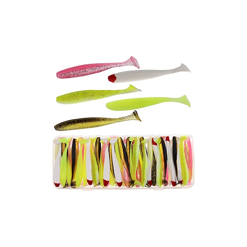 - 1. Fishing Soft Lure Size: Our fishing soft lures swimbaits come in four sizes, 50 pcs ; # 1: 2.17 inch / 0.05 oz ; #2: 2.48 inch / 0.06 oz ; #3: 2.76 inch / 0.08 oz ; #4: 3.54 inch / 0.14 oz.