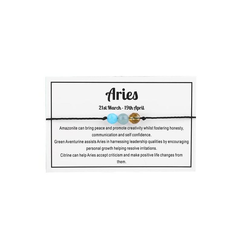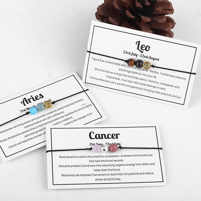 - 【MATERIAL & SIZE】- Each zodiac bracelet is made up of three 6mm natural stone beads, waxed cotton cord braided, Adjustable and measures Max 11" so should fit any wrist size. It comes presented on a beautifully designed keepsake card .