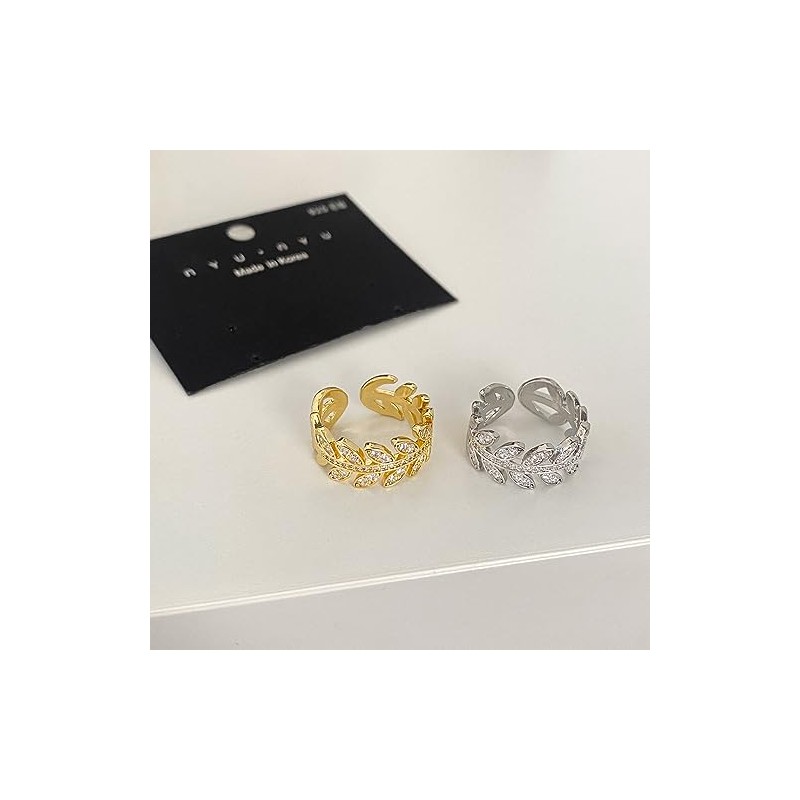 Fuqimanman2020 Adjustable Dainty Gold Plated CZ Leaf Open Ring Cubic Zirconia Olive Branch Leaves Band Minimalist Stacking Finger Rings Statement Ring Jewelry for Women(G)
