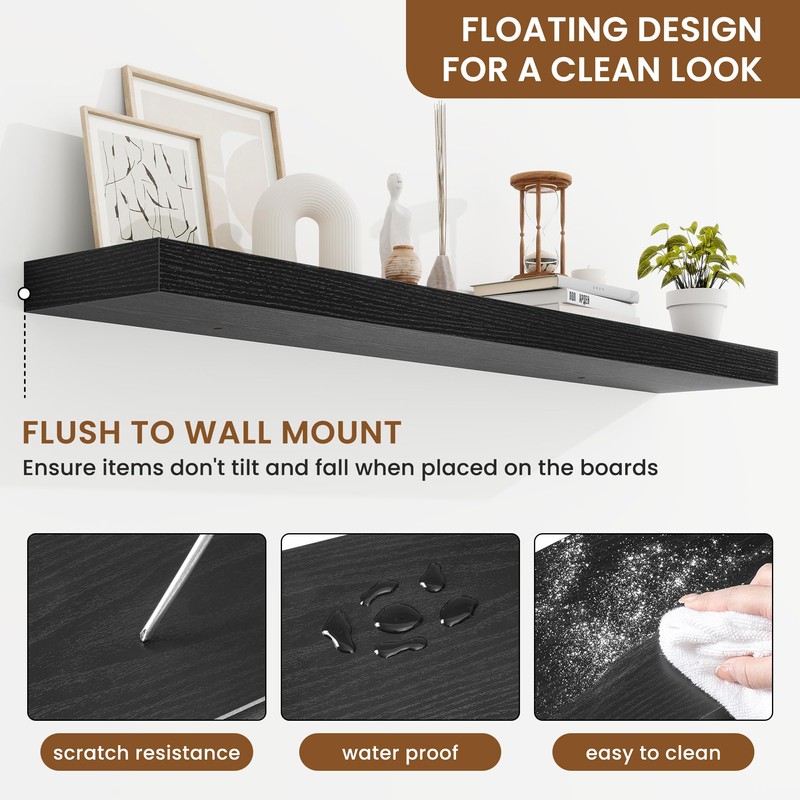 - Well-designed Floating Shelves: Our floating shelves for wall are made of premium engineered wood with a realistic wood grain finish. The rustic wood grain adds warmth and character to any modern or traditional interior. It can organize everyday clutter and make your space tidier, and make it full of aesthetic flare