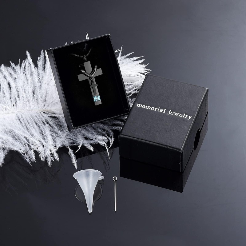- ✝Cremation Urn Schmuck: Die Größe des Kreuzes Gedenk-Anhänger ist 1,61 * 0,94 Zoll, ist eine perfekte Anhänger Größe, die sowohl schön ist und kann einige der Asche unterzubringen.Kann der Monat der Geburt Stein wählen.