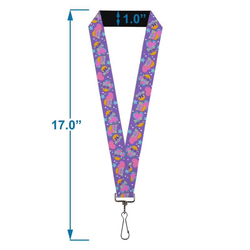 Furby Lanyard, Fuby Furbmojis and Icons Collage Purple Blues Pinks, Elastic