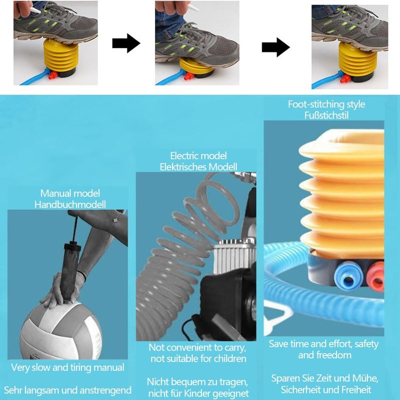 - FOOT PUMP With the foot pump, you can easily inflate your swim rings, and the foot pump only needs to borrow the weight of your body to fill the air easily. Connect the hose with the blue nozzle to inflate.