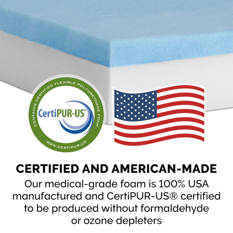 - CERTIPUR-US: Our foam is 100% manufactured in the USA and independently tested to meet CertiPUR-US standards for emissions, content, and durability; made WITHOUT formaldehyde, phthalates, mercury, lead, and ozone depleters