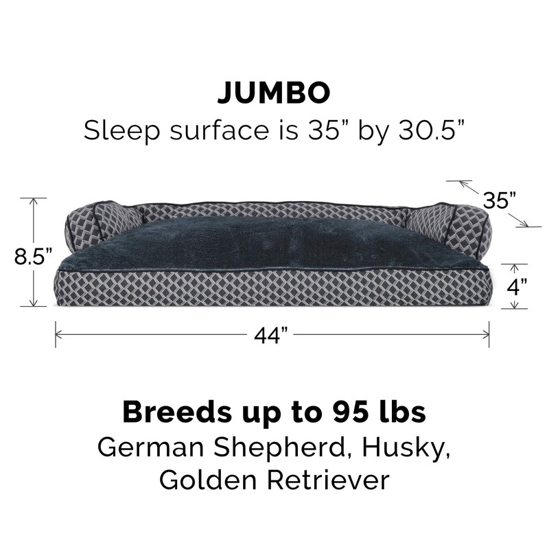 Furhaven Pet Bed for Dogs and Cats - Plush and Decor Comfy Couch Sofa-Style Pillow Cushion Dog Bed, Removable Machine Washable Cover - Diamond Gray, Jumbo (X-Large)