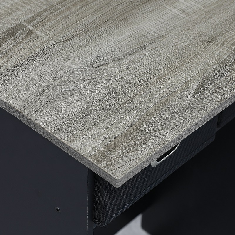 FURINNO Go Green Home Laptop Notebook Computer Desk/Table, With 2 Bin Drawers, French Oak Grey/Black/Black