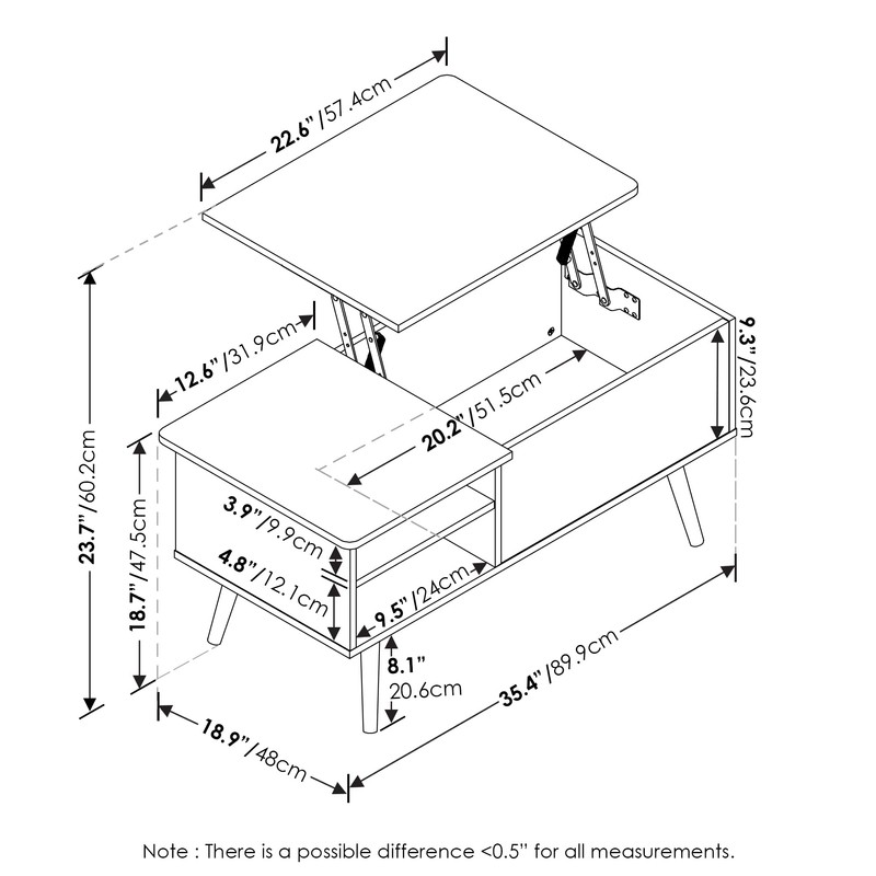 Furinno Jensen Living Room Wooden Leg Lift Top Coffee Table with Hidden Compartment and Side Open Storage Shelf, Flagstaff Oak