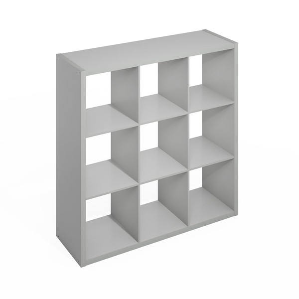 Furinno Simple Cube Storage Organizer, 9-Cube Display Shelf, Open Back Shelving Unit, Storage Shelves, Extra Thick Frame, for Organization and Storage, Living Room, Home Office, Light Grey