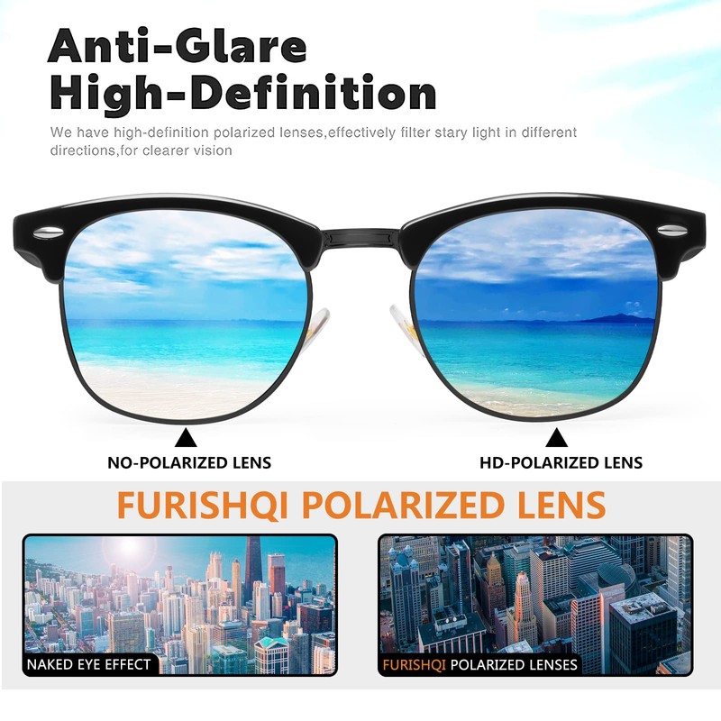 FURISHQI 3 PACK Classic Polarized Sunglasses for Men and Women Retro Style Semi Rimless Frame Sun Glasses 100% UV Protection Goggles