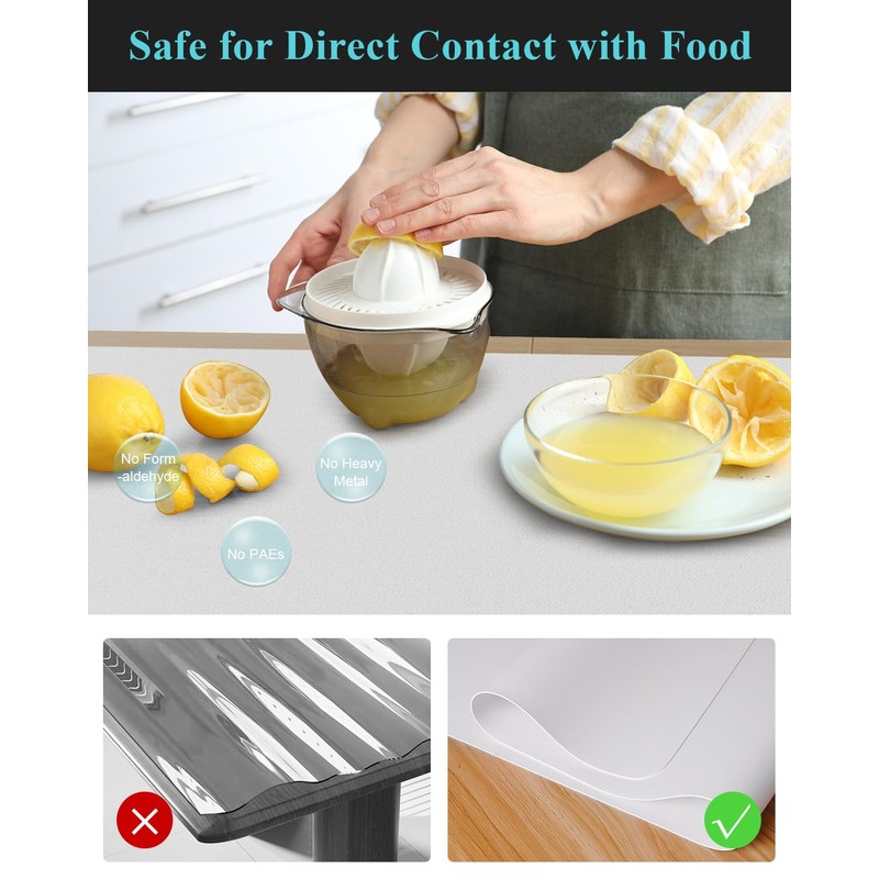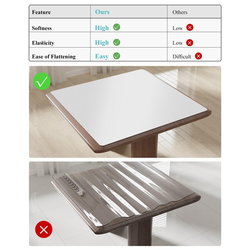 - Effortlessly Flat with Soft PVC: Crafted from advanced high-resilience PVC, this clear table cover protector offers a uniquely soft texture that is easier to flatten than standard PVC dining table cover mats. Unlike typical desk mats that can be stiff or prone to curling, our desktop mat lays flat instantly and stays in place, providing a sleek, smooth surface for your dining or work area