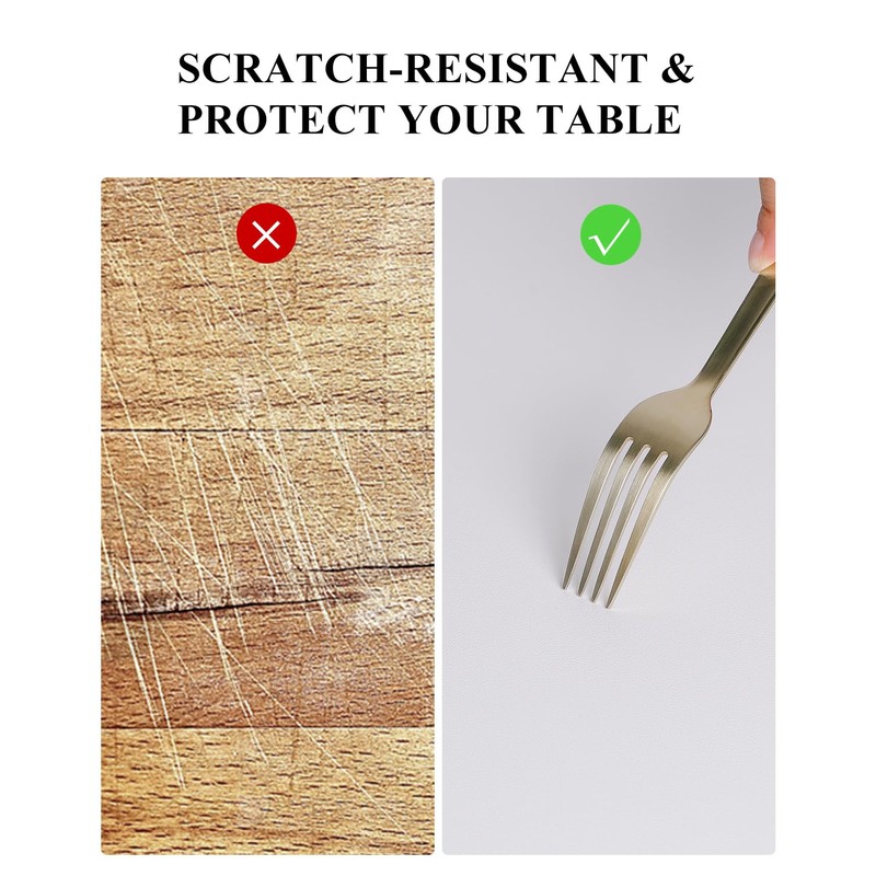 - Hide Defects & Protect Your Table: The white thick table cloth cover conceals imperfections, providing a smooth, polished look. Ideal for covering minor scratches and uneven surfaces, this mat offers an elegant and practical solution to refresh your table. Its waterproof and scratch-resistant surface keeps your table safe from spills, stains, and scratches, keeping it looking fresh and flawless