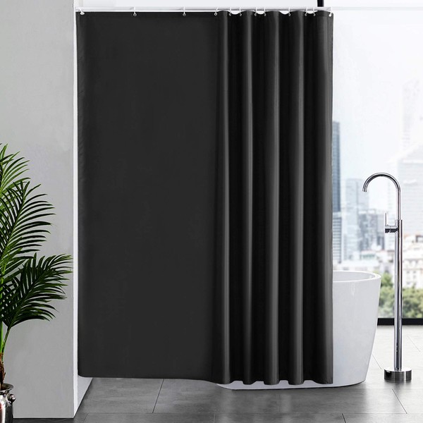 Furlinic Shower Curtain, Extra-Long, Bathroom Curtain, Anti-Mould Textile Curtain for Bathtub and Shower, Fabric Curtain, Anti-Bacterial, Washable, Extra Large with 12 Hooks, Black, 200 x 200 cm