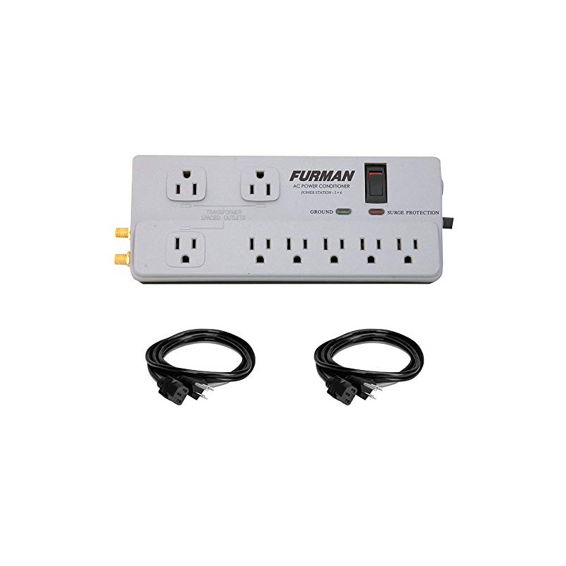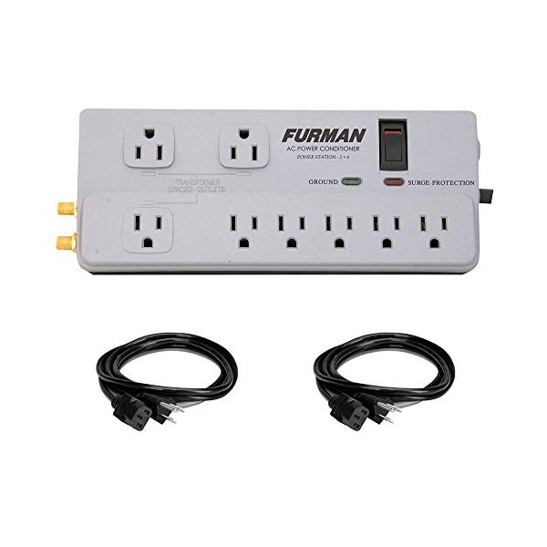Furman PST-2+6 Power Station Home Theater Power Conditioner with (2) Extension Cable (18 AWG, Black, 3') Bundle