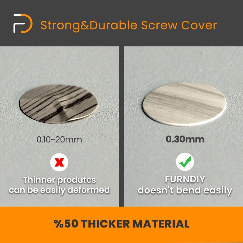- FOR A RANGE OF SURFACES: With our adhesive screw covers, you can easily hide screw holes and make your furniture look more stylish. They’re great for covering holes in wood grain or plain-colored furniture, shelf holes, table holes, lamp holes, and screw or mounting holes in bookcases. And it’s not just for furniture, you can use them to cover holes on any smooth surface, like cars, boats, appliances, and more.