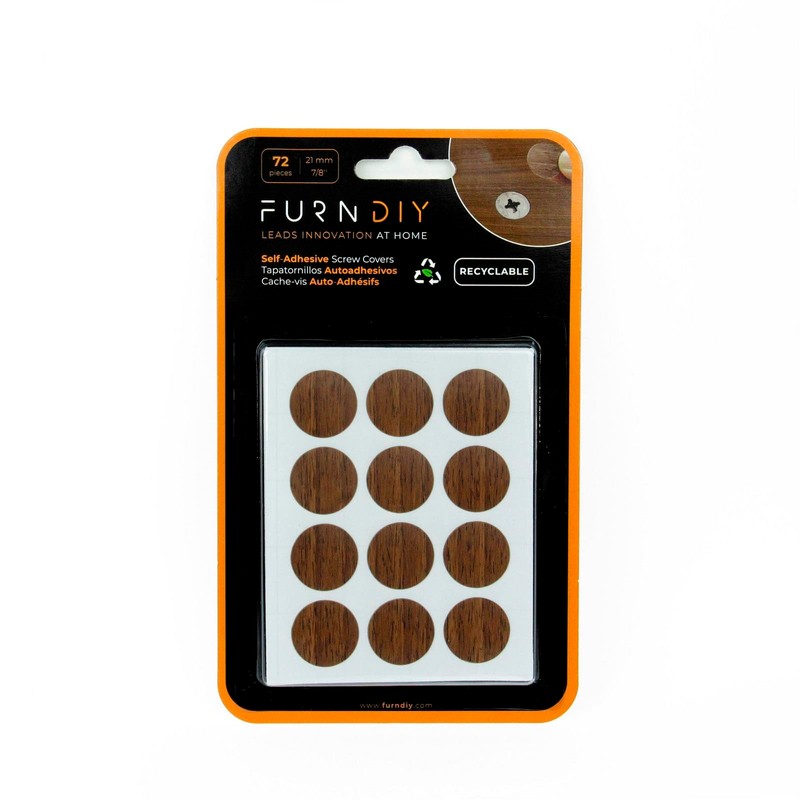 Furndiy 21mm 72 Pcs Walnut Self-Adhesive Screw Cover Caps - Screw Hiding - Screw Hole Cover Caps - Nail Cover - Screw Hole Stickers - Based in USA (Walnut, 0.83inch/21mm)