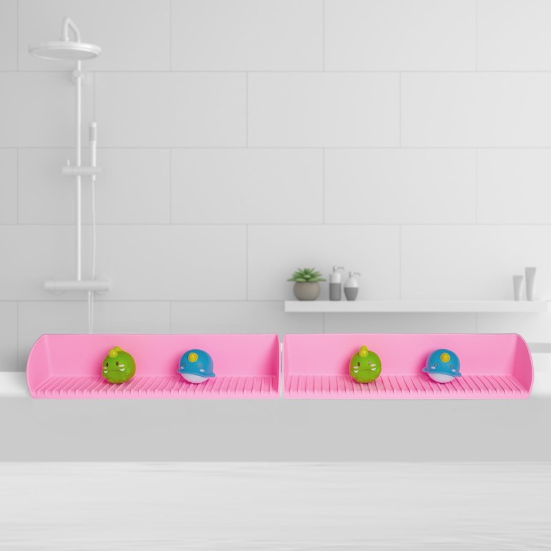 Furneeture Splash Guard for Bathtub, Silicone Bathtub Splash Guard Play Shelf with 4 Suction Cups, 15.75 Inch Bathtub Side Shelf Tray and Organizer, Suction Cups Attach to Bath Tub (1, Pink)