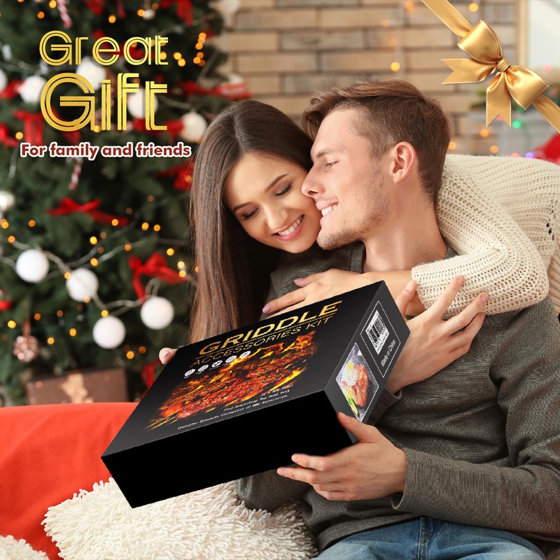 - PROFESSIONAL GRIDDLE TOOLSWe have a very complete line of BBQ tools, not only the essential grill tools for chefs, but also heat-resistant gloves, aprons, meat injector, a hundred bamboo skewers, etc. It will make everyone happy at your BBQ, weeknight party or everyday meal!