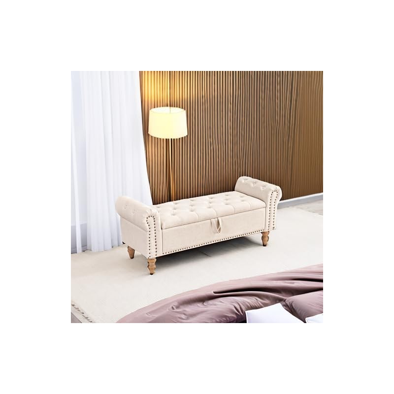 - Modern Design: Our storage ottoman showcases deep button tufting and elegantly rolled arms, capturing the essence of a truly modern piece. With a sophisticated structure, this bedroom storage bench embodies a minimalist style that prioritizes comfort and practicality.Diamond Stitch Button Tufting: The button-tufted stitching on the lid enhances the modern designthis of this end of bed bench. The diamond stitch pattern introduces subtle texture while maintaining optimal comfort.