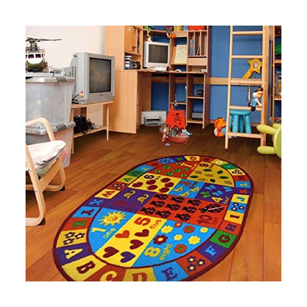 Furnish my Place 740 Numbers 3x5 Kids Abc Educational Alphabet Letter AntiSkid Oval, 3'3"x5', Multicolor