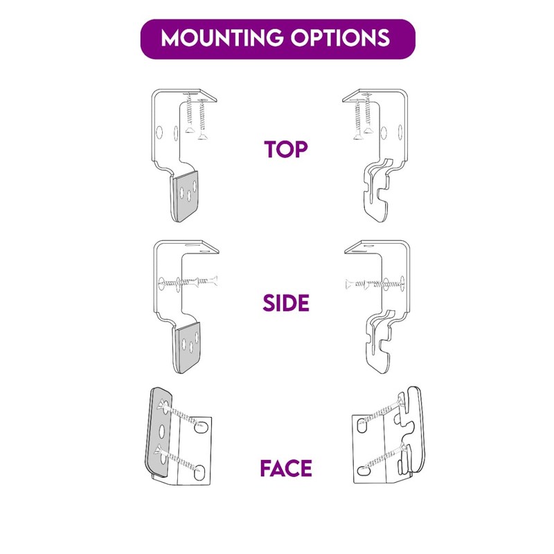 - Flexible bracket mounting options - inside recess, outside recess, window face, side fixing, top fixing - perfect for any windows and doors