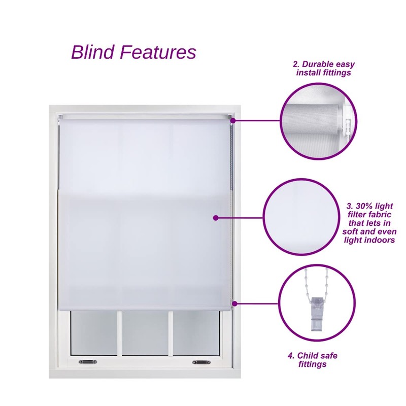 - Daylight blind: 30% light filtering fabric (non-blackout, sheer, or semi-transparent) same colour on both sides perfect as roller blinds for kitchen or living room