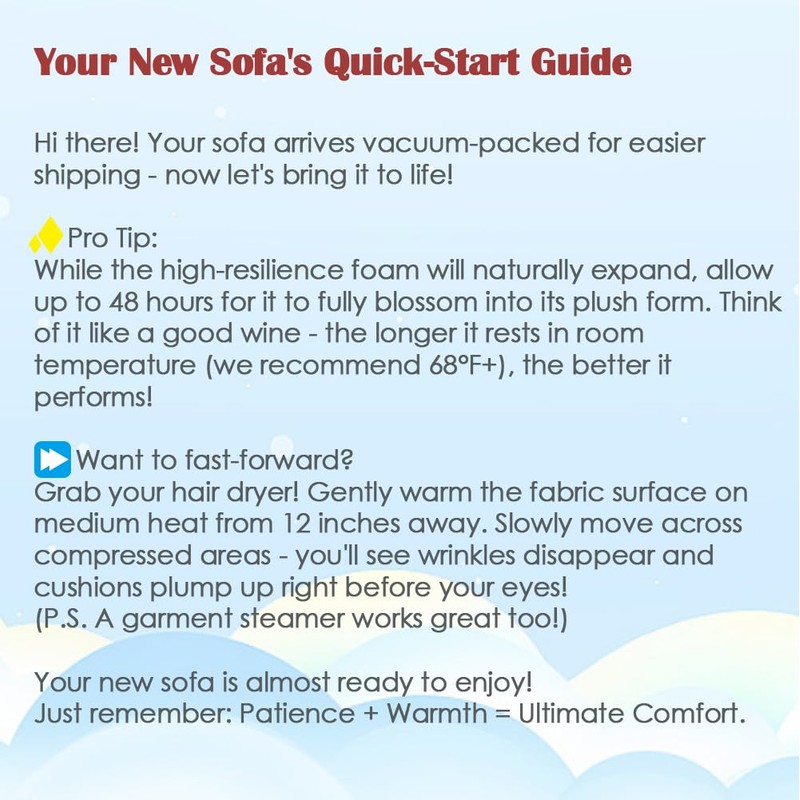 - 🌈【Helpful Hint for Your New Sofa】Your child's sofa has been vacuum-sealed for convenient transportation. Please be aware that the foam within may need more than 48 hours to fully expand and regain its shape after being unboxed due to long-term compression. We appreciate your patience as it transforms into the perfect sofa. If you're eager to speed up the process, a garment steamer can be used to expedite the foam's expansion and smooth out any creases