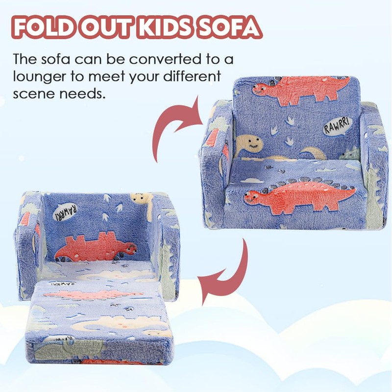 - 🦄【Convertible Sofa to Lounger】 Our innovative 2-in-1 design transitions seamlessly from a fold-out chair to a toddler's lounge sofa in an instant. With its deeply plush fabric and supportive foam core, your child can relish ultimate comfort whether they decide to sit or lie down