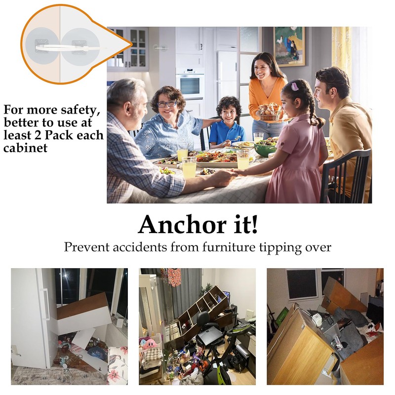 Furniture Anchors (30 Pack) No Drill Upgraded Furniture Straps for Baby Proofing, Self-Adhesive Secure 168 Pound Furniture Prevent Falling Anti Tip Earthquake Straps for Child Safety