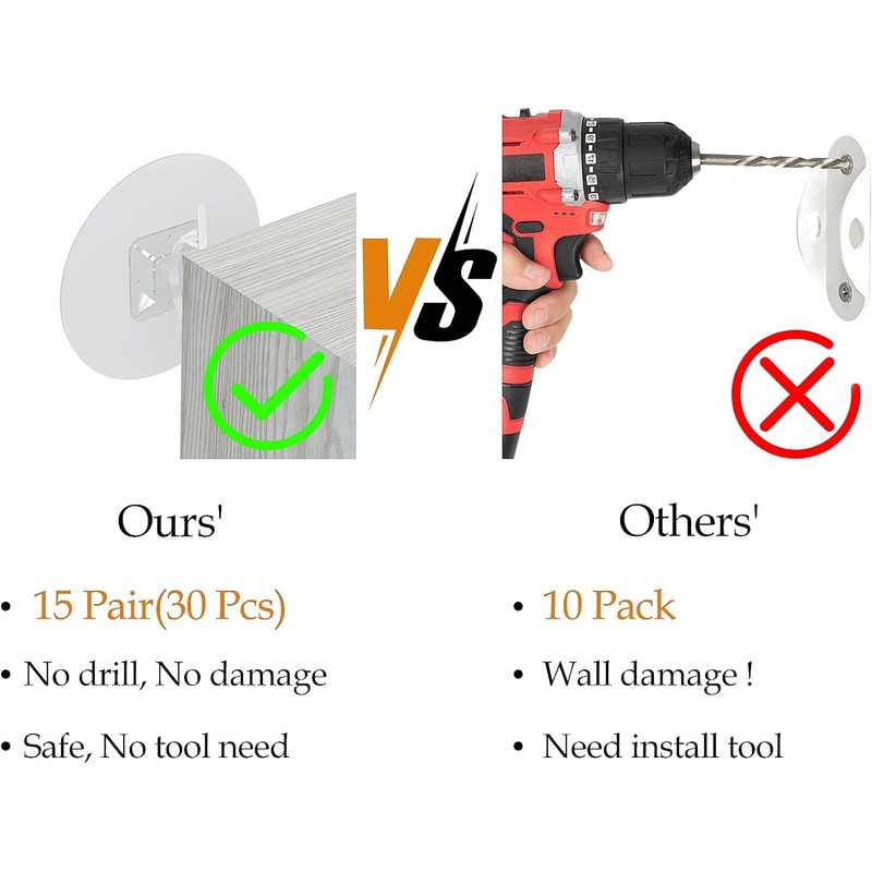 - đ©ă30 Pack Furniture Anchorsă: Furniture anchors for baby proofing that come with 30 pack,including 30 Adhesive anchors + 30nylon straps,enough to secure any furniture and prevent it from falling.