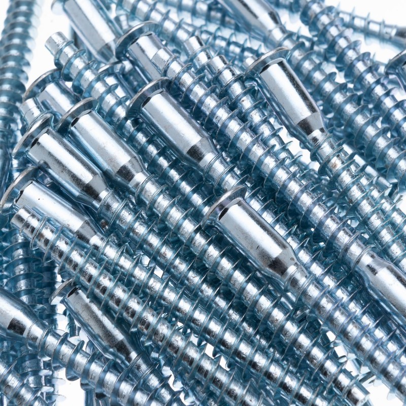 - DURABLE CONSTRUCTION Made of high quality galvanized steel, these confirmation screws provide long lasting strength and corrosion resistance for furniture assembly.