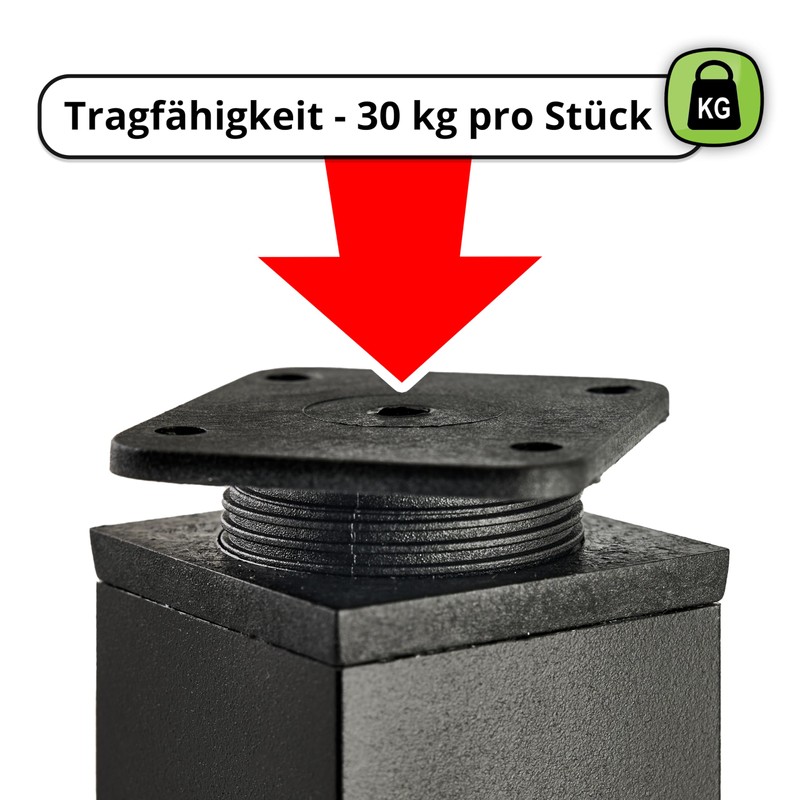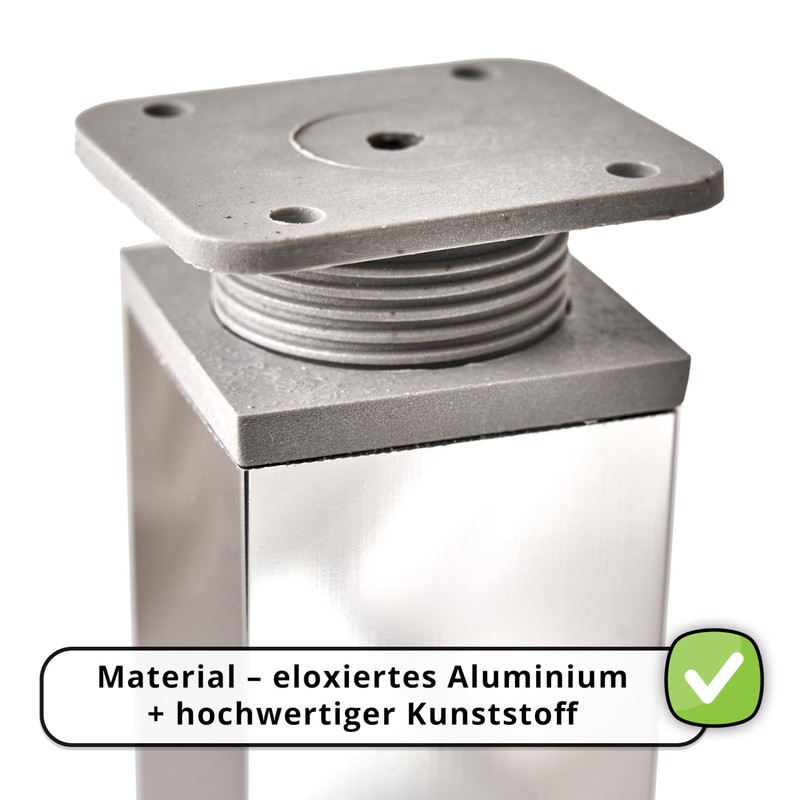 Furniture Feet, Metal Table Legs, Height Adjustable, Sofa Feet, Aluminium Profile, Pack of 4, 40 x 40 mm