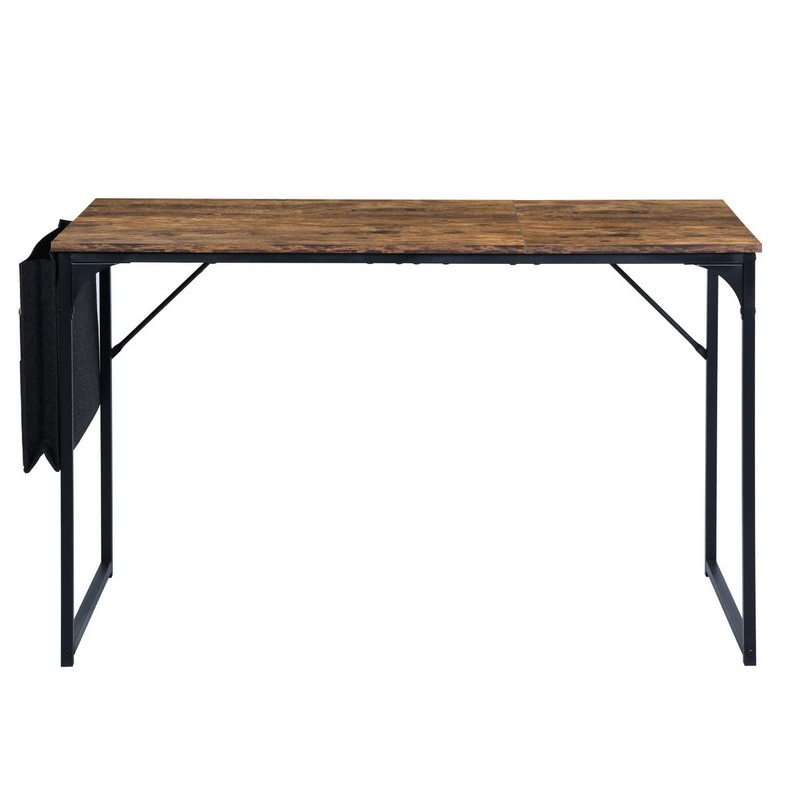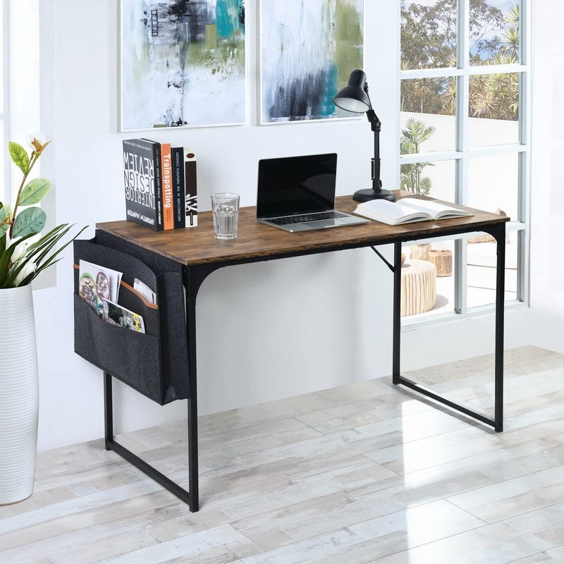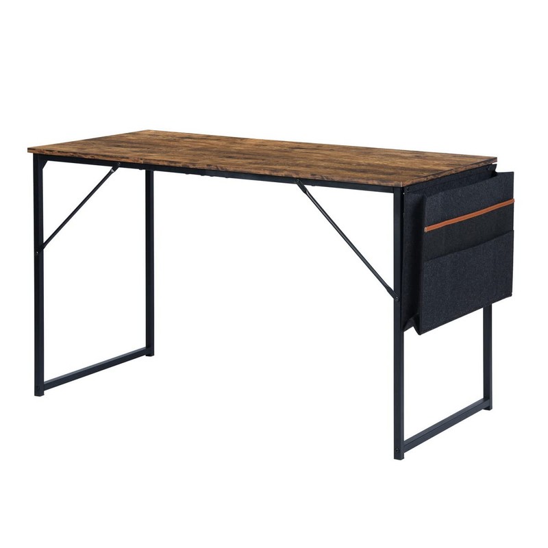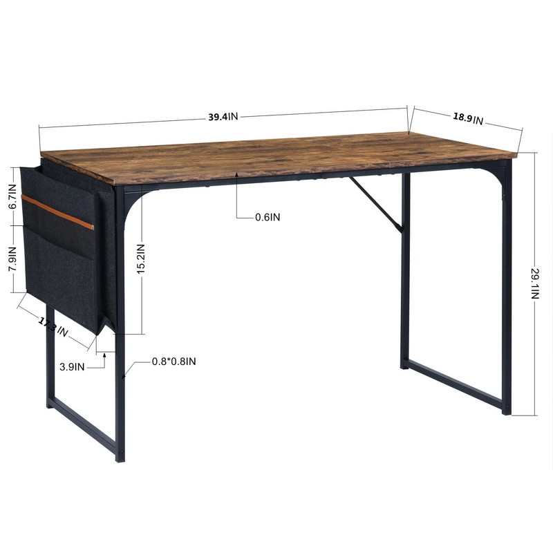 FurnitureR 39.4 inch Small Study Writing Table with Storage Bag Space Saving for Home Office, Modern PC Metal Frame Computer Desk, Brown